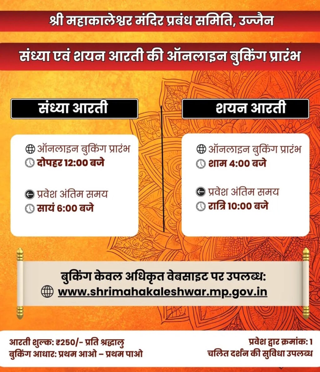 The temple management committee of Shri Mahakaleshwar Jyotirlinga, Ujjain has officially started online booking for Sandhya Aarti and Shayan Aarti.